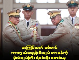 စစ်တပ်ဦးစီးချုပ် ရာထူးမှ တာဝန်လွှဲပြောင်းပေးအပ်ပွဲတွင် မင်းအောင်လှိုင် ဝမ်းနည်းမျက်ရည်ကျ ငိုခဲ့၍ မထွက်ခွာမီ နောက်ဆုံး မှတ်တမ်းတင်ဓာတ်ပုံရိုက်ကူးခြင်း အစီအစဉ်ဖျက် သိမ်းခဲ့ရ ရန်ကုန်၊ မတ် ၃၀ အကြမ်းဖက်စစ်တပ်၏ စစ်တပ်ဦးစီးချုပ်ရာထူးမှ အနားယူပြီး တာဝန်လွှဲပြောင်းပေးအပ်ပွဲတွင် မင်းအောင်လှိုင်မှာ မျက်ရည်ဖြိုင်ဖြိုင်ကျ ငိုကြွေးခဲ့သောကြောင့် ဇေယျာသီရိဗိမ္မာန်မှ မထွက်ခွာမီ မှတ်တမ်းတင်ဓာတ်ပုံရိုက်ကူးခြင်းအစီအစဉ်ကို ဖျက်သိမ်းခဲ့ရကြောင်း […]