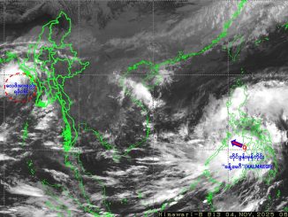 နေ့စဉ်မိုးလေဝသသတင်း ———————— (၂၀၂၅ ခုနှစ်၊ နိုဝင်ဘာလ ၄ ရက်နေ့ မွန်းလွဲ ၂:၀၀ နာရီအချိန် ထုတ်ပြန်ချက်) ========================================= ယမန်နေ့နံနက် ၀၉:၃၀ နာရီအချိန်မှ ယနေ့နံနက် ၀၉:၃၀ နာရီအချိန်အထိ မိုးလေဝသတိုင်းထွာချက်အကျဉ်းချုပ်။ လွန်ခဲ့သော ၂၄ နာရီအတွင်းက ကချင်ပြည်နယ်တွင် တိမ်အသင့် အတင့် […]