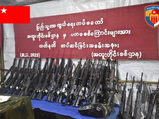 ရန်ကုန်၊ပဲခူးနဲ့ မွန်က ပကဖတိုက်ခိုက်ရေးစစ်ကြောင်းတွေကို လက်နက်တပ်ဆင် နိုဝင်ဘာ-၁၀၊ ၂၀၂၅/People’s Spring ရန်ကုန်တိုင်းပကဖတိုက်ခိုက်ရေးစစ်ကြောင်း၊ပဲခူးခရိုင်ပကဖ တိုက်ခိုက်ရေးစစ်ကြောင်းနဲ့ မွန်ပြည်နယ်ပကဖတိုက်ခိုက်ရေးစစ်ကြောင်းကို လက်နက်တပ်ဆင်ပေးခဲ့ကြောင်း အထူးတိုင်းစစ်ဌာန၊ ပြည်သူ့ကာကွယ်ရေးတပ်မတော်က ဒီကနေ့ ထုတ်ပြန်ပါတယ်။ ဒီကနေ့(နိုဝင်ဘာ ၁၀ရက်) မနက်မှာ ပဲခခူးတိုင်း ရှေ့တန်းစခန်းတစ်ခုမှာ လက်နက်တွေတပ်ဆင်ပေးခဲ့တာလို့ ဆိုပါတယ်။ အထူးတိုင်းစစ်ဌာန၊ တိုင်းကွပ်ကဲရေးမှူး ရဲဘော်အောင်စံရှားနဲ့ […]