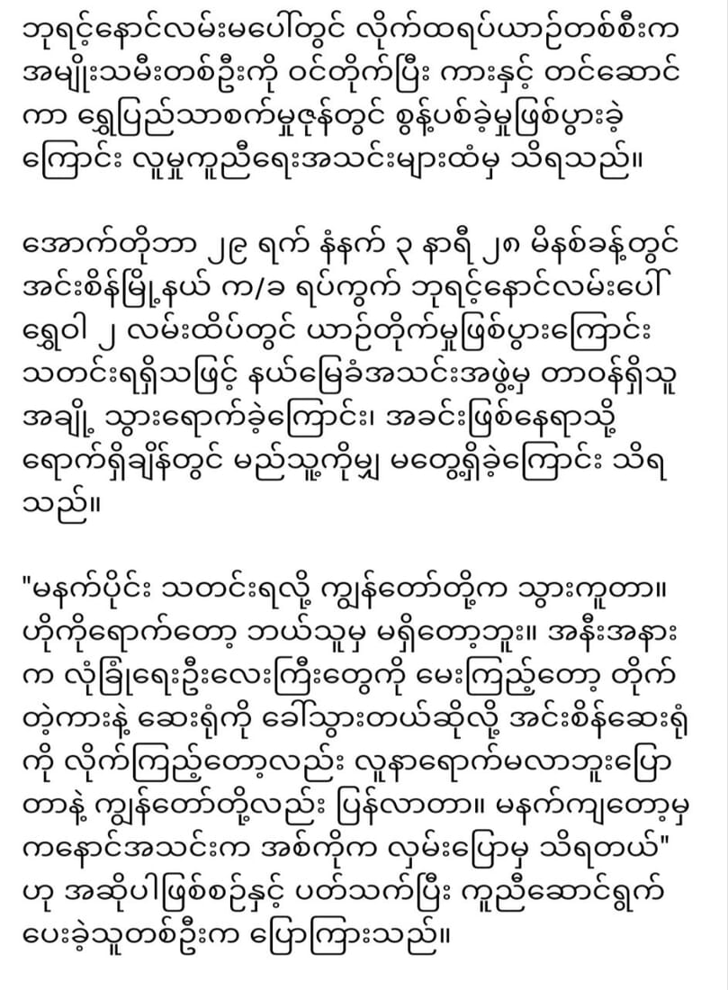 “ကားနဲ့တိုက်မိလို ဆေးရုံပိုပေးမယ် တင်ခေါ်ပီး ရွှေပြည်သာကအမှိက်ပုံမှာ ပစ်ချခဲ့လို” October 30, 2025 admin Finance 0 “ကားနဲ့တိုက်မိလို ဆေးရုံပိုပေးမယ် တင်ခေါ်ပီး ရွှေပြည်သာကအမှိက်ပုံမှာ ပစ်ချခဲ့လို”