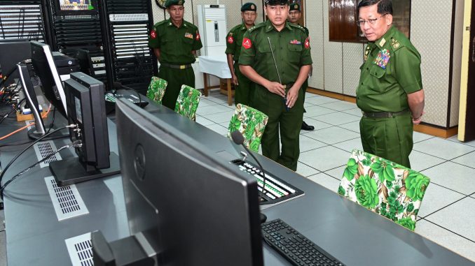 အကြမ်းဖက်စစ်တပ်က အင်တာနက်ပေါ်မှ သတင်းများကို တုံ့ပြန်ရန်နှင့် နိုင်ငံရေးအရတိုက်ခိုက်မှုများကို တားမြစ်အရေးယူရန် ပြည်ထဲ ရေးဒုဝန်ကြီး ဦးဆောင်သော ကော်မတီနှင့် နည်းပညာကျွမ်းကျင်အဖွဲ့များ ဖွဲ့စည်းပြီး ၂၄ နာရီစောင့်ကြည့်ရန် အမိန့်နှင့် ညွှန်ကြားချက် ထုတ်ပြန်ထားကြောင်း စစ်တပ်က ထုတ်ပြန်ထားသော ပြန်တမ်းအရ သိရှိရသည်။