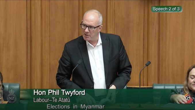 နိုဝင်ဘာ ၅ ရက် ဒီနေ့ ကျင်းပတဲ့ နယူးဇီလန်လွှတ်တော်မှာ မြန်မာစစ်ကောင်စီရဲ့ ရွေးကောက်ပွဲက လွတ်လပ်ပြီး တရားမျှတမှာ မဟုတ်တာကြောင့် နယူးဇီလန်အစိုးရအနေနဲ့ အဲဒီရွေးကောက်ပွဲကို အသိအမှတ်မပြု၊ လက်မခံသင့်ကြောင်း အဆိုကို လွှတ်တော်တက်ရောက်လာတဲ့အမတ်အားလုံးက ထောက်ခံအတည်ပြုခဲ့တာပါ။