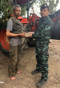 (အလင်းဝင်လာတဲ့ တပ်မ(၂၂)က တပ်သားနှစ်ဦးကို ဗိုလ်မှူးစောဒါဘောက ကျပ်သိန်း ၃၀စီ ချီးမြှင့်နေစဉ်။ ဓာတ်ပုံ – ပေးပို့)