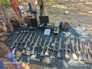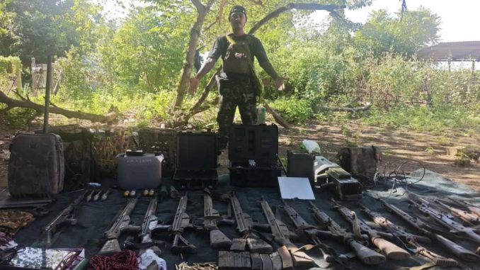 စစ်အုပ်စုဘက်ကနေ MA – 1 နှစ်လက်၊ MA- 3 နှစ်လက်၊ MA- 4 တစ်လက်၊ G -3 ခုနှစ်လက်၊MA- 6 တစ်လက်၊MA n တစ်လက်၊ ကာဘိုင် ငါးလက်၊ စလေယာတစ်လက်၊ လေးလက်ဒရုန်း တစ်လက်၊ ဂျန်ဘာအကြီးတစ်လုံး၊ ပါဝါစတေရှင် တစ်လုံး၊ လက်တော့ပ် တစ်လုံး၊ ၄၀ မမ သီး တစ်လုံးနဲ့ အီနာဂါ တစ်လုံးစတဲ့ ကနဦး သိမ်းဆည်းရရှိထားပြီး နယ်မြေရှင်းလင်းရေးအကုန် မဝင်နိုင်သေးဘူးလို့ ဆိုပါတယ်။