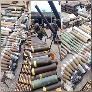 ဓာတ်ပုံ- မောတောင်မြို့တွင် သိမ်းပိုက်ရရှိထားသော စစ်တပ်၏ လက်နက်ခဲယမ်းများနှင့် နယ်စပ်ဘက်သို့ ထွက်ပြေးသည့် စစ်သားများကို ထိုင်းစစ်တပ်က လက်နက်များသိမ်းယူ လက်ခံနေစဉ်။