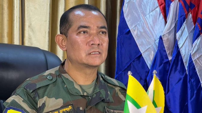 ကရင်ပြည်နယ်၊ မြ၀တီမြို့နယ်၊ ရွှေကုက္ကိုလ်မြို့သစ်တွင် ကျားဖြန့်များကို အပြီးသတ်အပြတ် နှိမ်နင်းတော့မည်ဖြစ်ကြောင်း စစ်တပ်လက်အောက်ခံ ကရင်နယ်ခြားစောင့်တပ်- BGFမှ နိုင်မောင်ဇော်က ထိုင်းသတင်းမီဒီယာများကို ခေါ်ယူပြောဆိုသည်။