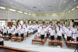 ပုံစာ – သေဆုံးသွားသည့် တသီးပုဂ္ဂလကိုယ်စားလှယ်လောင်း ဦးသန်းဝင်းနှင့် ကြံ့ခိုင်ရေးပါတီဝင်များ