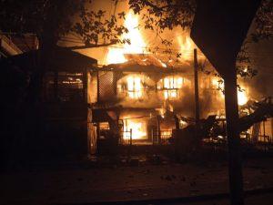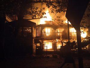 သံတွဲမြို့ အမှတ် ၁ ရပ်ကွက်ကို စစ်တပ်က ယနေ့ နှစ်သစ်ကူး ညပိုင်းတွင် လေယာဉ်ဖြင့် ဗုံးကျဲတိုက်ခိုက်မှု နေအိမ်များ မီးလောင်နေ