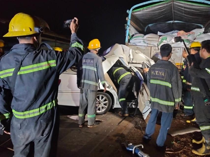 ” ရပ်ထားတဲ့ ဆန်ကားကို အိမ်စီးကားက နောက်ကနေ ဝင်တိုက်တာ ။ ရန်ကုန်ဘက်ကို လာတဲ့ကားပါ။ ကားက အရှိန်ပြင်းတဲ့ ပုံရတယ် ။ဆန်ကားရဲ့ အောက်ထဲကို ညပ်ဝင်သွားတာ ။ သေတာက အိမ်စီးကားပေါ်က ယာဥ်မောင်း နဲ့ နောက်ခန်းက ထိုင်တဲ့ အမျိုးသမီးပါ။ ဒဏ်ရာရ သူတွေကလည်း နှစ်ယောက်လုံး အနီရောင်အဆင့် ပါ ။ ကားထဲကနေ တော်တော်လေး ဆွဲထုတ်ခဲ့ရတယ်။ခေါင်းတွေချည်းပဲ ဒဏ်ရာများတယ်။ အလောင်းတွေက လှိုင်သာယာ ဆေးရုံမှာပို့ထားတယ်။ ” လို့ မြေပြင် ကူညီရေး ဆောင်ရွက် ခဲ့တဲ့ လှိုင်သာယာ မြို့နယ်၊ မေတ္တာအလင်းရောင် လူမှုကူညီရေး အသင်း တာဝန်ရှိသူက ပြောပါတယ်။