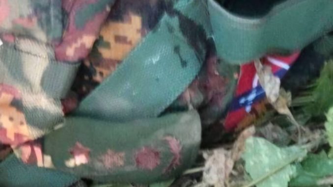 (ပန်းတောင်းမြို့နယ်မှာ ဇန်နဝါရီ ၄ ရက်ကဖြစ်ခဲ့တဲ့တိုက်ပွဲမှာ သေဆုံးခဲ့တဲ့ စကခ-၁၀ စကခမှူးဗိုလ်မှူးကြီးဟန်လင်းအောင် ရဲ့ ပခုံးပေါ်မှ အပွင့် နဲ့ တိုက်ပွဲမှာ AA ကသိမ်းဆည်းရရှိခဲ့တဲ့လက်နက်ခဲယမ်းတွေ)