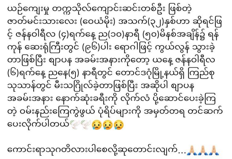 ရန်ကုန်-ပြည်လမ်းပေါ်ရှိ စစ်တပ်စခန်းကို တော်လှန်ရေးတပ်များက ဝင်ရောက်တိုက်ခိုက်သဖြင့် တိုက်ပွဲဖြစ်ပြီး ယာဉ်အသွားအလာ ယာယီရပ်ဆိုင်းကာ ကားရာချီ ပိတ်မိနေ