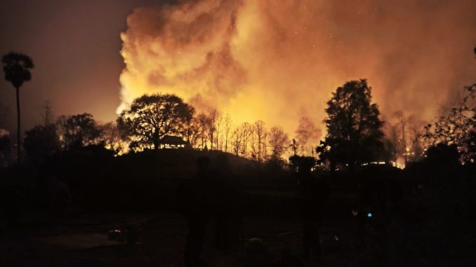 ဓာတ်ပုံ – စစ်တိုင်းတိုင်းအတွင်းရှိ ကျေးရွာတစ်ရွာကို စစ်တပ်က ညအချိန် မီးရှို့ဖျက်ဆီးနေစဉ် (ပုံအဟောင်းဖြစ်သည်)