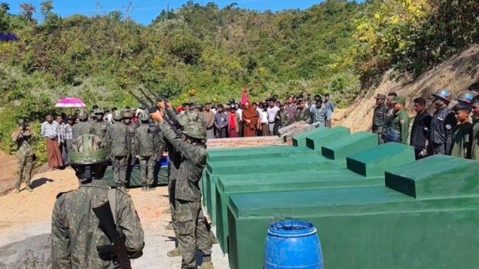 ဗိုလ်မှူးထက်မြက်သိန်းရဲ့ ဈာပနအခမ်းအနားကိုတော့ အနီးစပ်ဆုံး စစ်ဒေသတနေရာမှာ ပြီးခဲ့တဲ့ရက်ပိုင်းက ကျင်းပခဲ့တာမှာ ဒေသဆိုင်ရာ AA တပ်မှူးနဲ့ အနီးအနား သက်ဆိုင်ရာတပ်မှူးတွေ၊ မိဘဆွေမျိုး၊ ဇနီးနဲ့ သားသမီးနဲ့ အာရက္ခတပ်တော်က ရဲဘော်တွေ တက်ရောက် ဂါရဝပြုခဲ့ကြပါတယ်။