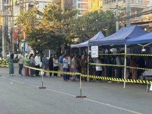 မဲလာပေးသူတွေကို အချိုရည်၊ မုန့်နဲ့ ရေဗူး ပေးဝေ၊