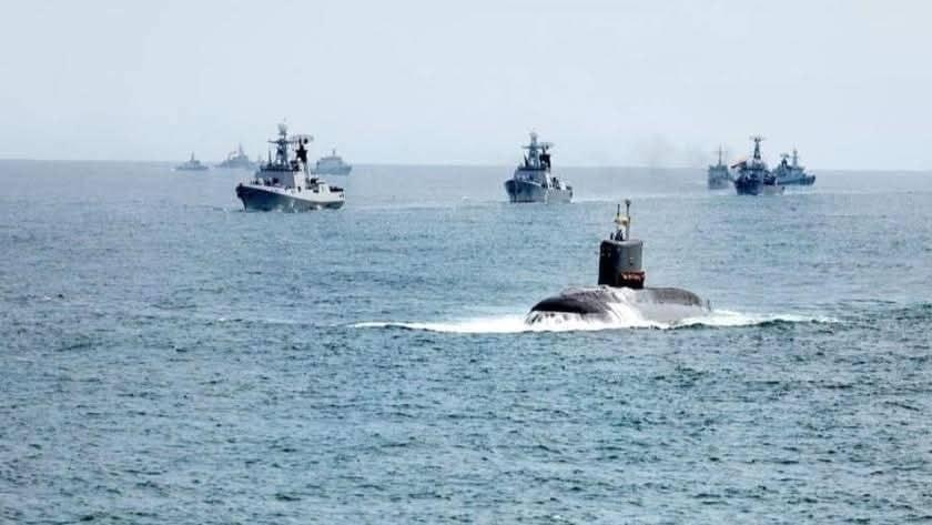 ပုံစာ-စစ်ကော်မရှင် စစ်ရေယာဉ်များ ပင်လယ်ပြင်စစ်ဆင်မှု လေ့ကျင့်ဆောင်ရွက်နေသည်ကို တွေ့ရစဉ်။