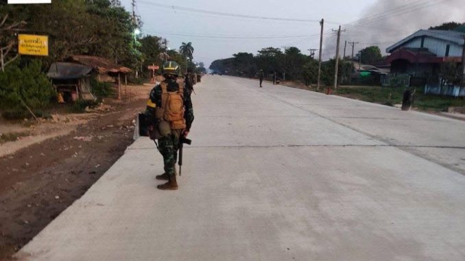 (အမှတ်(၂)စစ်ဆင်ရေးနယ်မြေရဲ့ အောင်မြင်စစ်ဆင်ရေးအဖြစ် တောကျွဲအင်းမြို့(အောင်မြင်မြို့)အပါအဝင် ရန်ကုန် – မန္တလေးလမ်းဟောင်းက စစ်တပ်စခန်းတွေကို သိမ်းပိုက်ချေးမှုန်းအပြီး မြင်ကွင်း။ ဓာတ်ပုံ – ပဲခူးတိုင်းစစ်ဌာန)