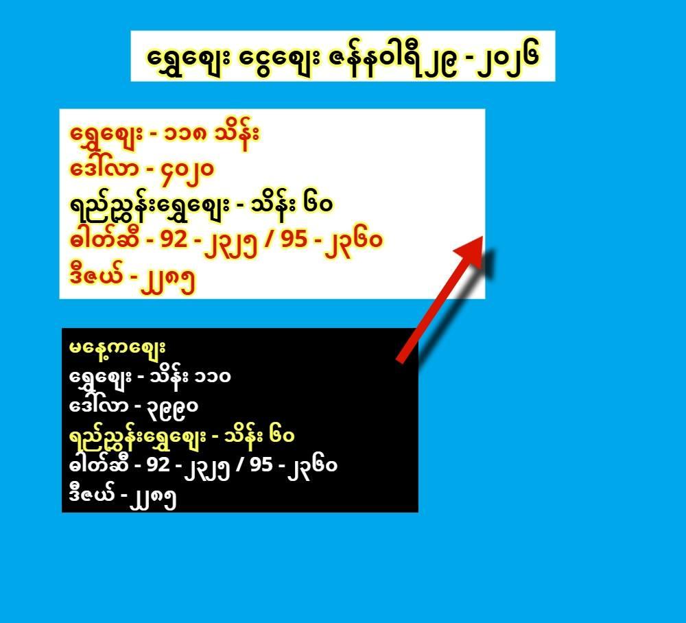 ဓါတ်ဆီ – 92 – ၂၃၂၅ / 95 – ၂၃၆၀