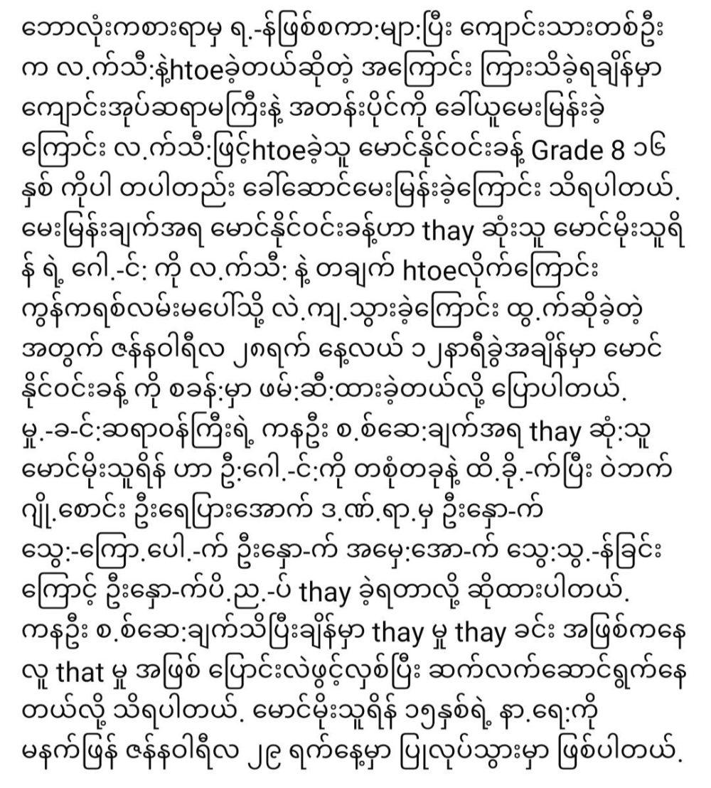 ရွှေပြည်သာမှ ကျောင်းသား မောင်မိုးသူရိန်ကို Tဆုံ:အောင် htoeခဲ့သည့် နိုင်ဝင်းခန့် နောက်ဆက်တွဲတွေ အကုန်ပေါ်ပြီ January 30, 2026 admin Finance 0