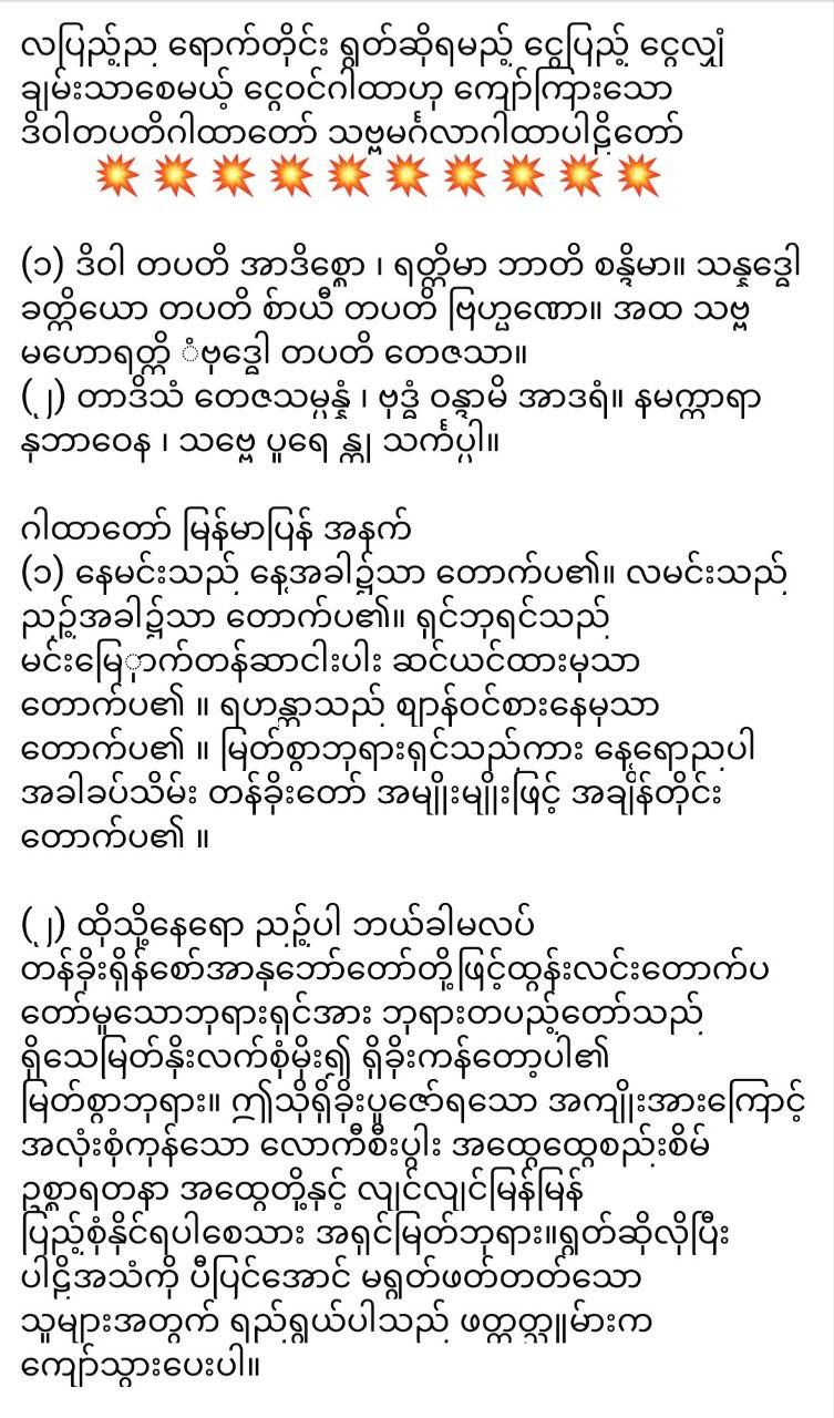 တပို့တွဲလပြည့်ညမှာ ရွတ်ဆိုလျှင် အထူးအကျိုးပေးတဲ့ ရွှေပြည့် ငွေလျှံ ချမ်းသာစေမယ့် ငွေဝင်ဂါထာတော်ကြီး”