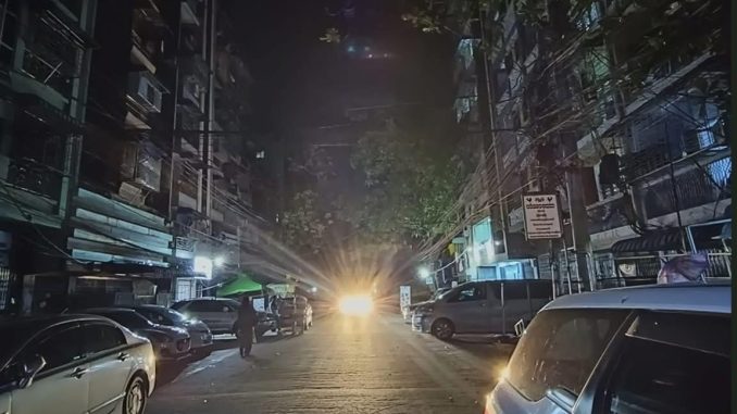 ဓာတ်ပုံ- လျှပ်စစ်မီးများ ပြတ်တောက်နေသည့် ရန်ကုန်မြို့။