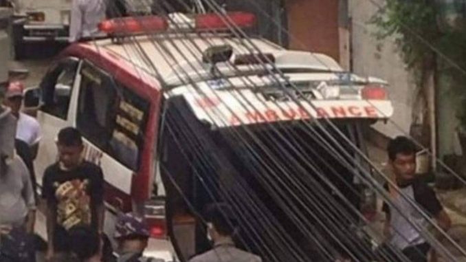 ပုံစာ- လှိုင်မြို့နယ်အတွင်း တွေ့ရသည့် အကြမ်းဖက်ရဲများနှင့် လူနာတင်ကားတစ်စီး (ပုံဟောင်း)