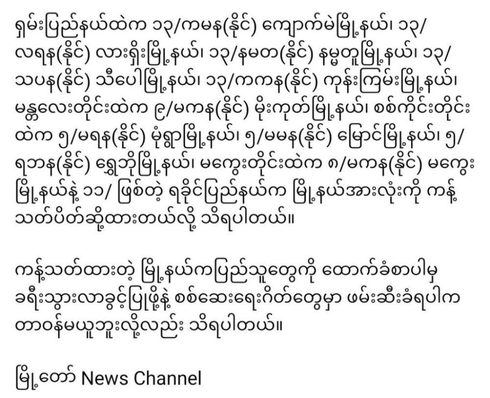 “ဒီမြို့နယ်တွေကလူတွေ ထောက်ခံစာမပါပဲ ခရီးသွားရင် ဖမ်းမယ်တဲ့” February 8, 2026 admin Finance 0 “ဒီမြို့နယ်တွေကလူတွေ ထောက်ခံစာမပါပဲ ခရီးသွားရင် ဖမ်းမယ်တဲ့”