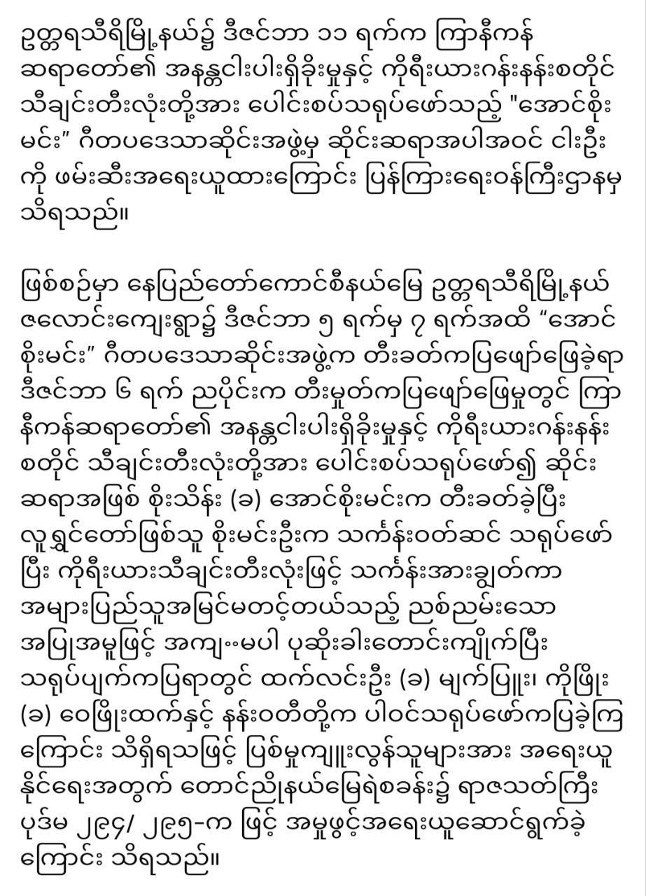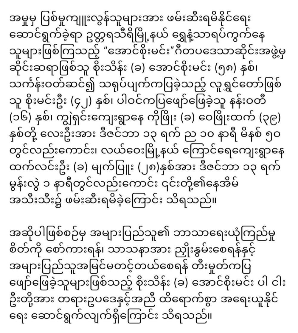 “မ အ လ အ ဖွဲ့ ကိုလင်း ယုန် ကြီးတစ် ကယ် ဆော် ပြီလွှတ် တော် မှာ အ တည် ပြု လိုက် ပီ”