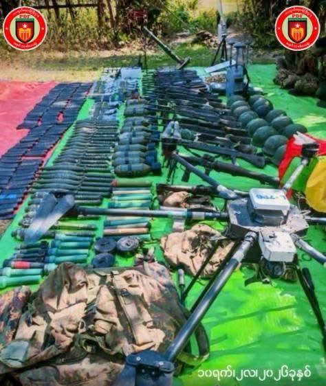 (ကန့်ဘလူခရိုင်က စစ်တပ်စခန်း ၄ခုနဲ့ စစ်ကြောင်း တိုက်ခိုက်သိမ်းပိုက်အပြီး သိမ်းရသော လက်နက်ခဲယမ်းတွေ။ ဓာတ်ပုံ – အမှတ် (၁) စစ်ဒေသ)