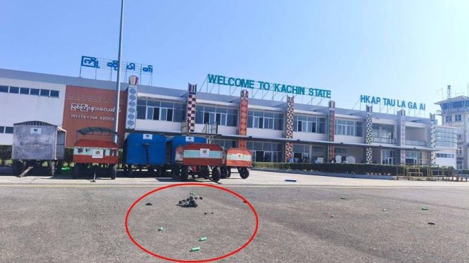 ယမန်နေ့ နံနက်ပိုင်း ကချင်ပြည်နယ်၊ မြစ်ကြီးနားမြို့၊ ပန်းမတီးရပ်ကွက်ရှိ မြစ်ကြီးနားလေတပ်နှင့် အနီးဝန်ကျင်နေရာများသို့ FPV Suicide Drone များဖြင့် KIA/PDF တပ်များက အသုံးပြု၍ တိုက်ခိုက်ခဲ့ရာ စစ်တပ်က လေကြောင်းရန်ကာကွယ်ရေးစနစ်များဖြင့် ထောက်လှမ်းသိရှိခဲ့ပြီး အဆိုပါ Drone ယာဉ်များအား လက်ဦးမှုရယူဟန့်တားနိုင်ခဲ့ကြောင်း၊ ယင်းသို့ဆောင်ရွက်နိုင်ခဲ့ခြင်းကြောင့် လေဆိပ်အတွင်း ကျရောက်ပေါက်ကွဲခြင်းမရှိဘဲ လေယာဉ်ပြေးလမ်းနှင့် အနီးဝန်းကျင်နေရာများတွင်သာ မြေပြင်ပေါ်သို့ ပျက်ကျခဲ့ကြောင်း သိရှိရသည်။