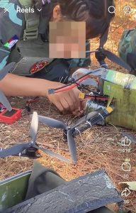 (AIF Myanmarတပ်ဖွဲ့ရဲ့ အမျိုးသမီးတပ်ဖွဲ့ (WITCH)ရဲဘော်တစ်ဦး ဒရုန်းပြင်ဆင်နေပုံနဲ့ စစ်တပ်စစ်ကြောင်းကို တွေ့ရစဉ်။ ဓာတ်ပုံ – Screen-grab)