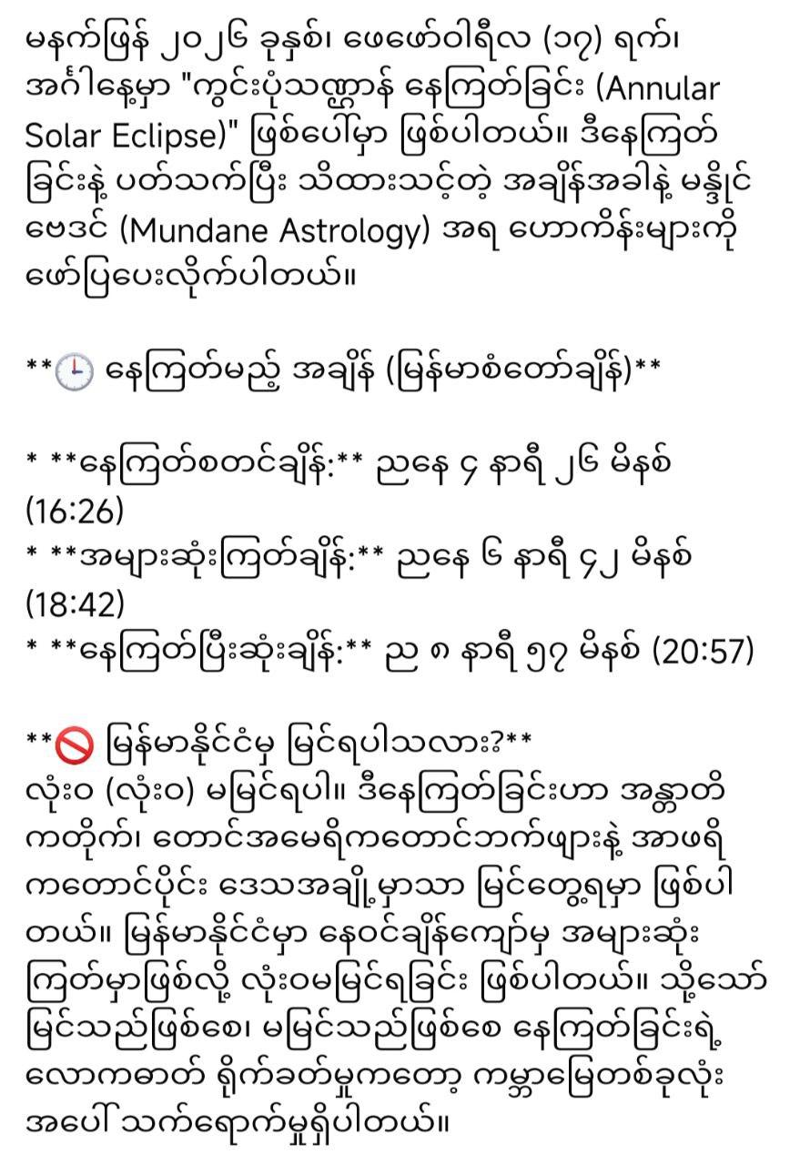 “မနက်ဖြန်၁၇ရက်နေ့ အထူးသတိထား…”