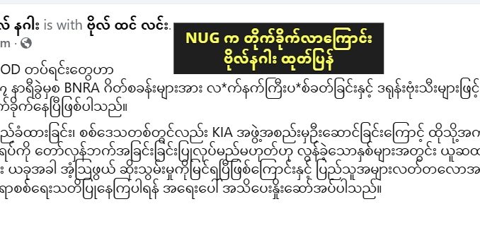 NUG ရဲ့ MOD တပ်ရင်းတွေက BNRA ဂိတ်စခန်းတွေကို တိုက်ခိုက်နေပြီလို့ ဗိုလ်နဂါး အသိပေး ထုတ်ပြန်