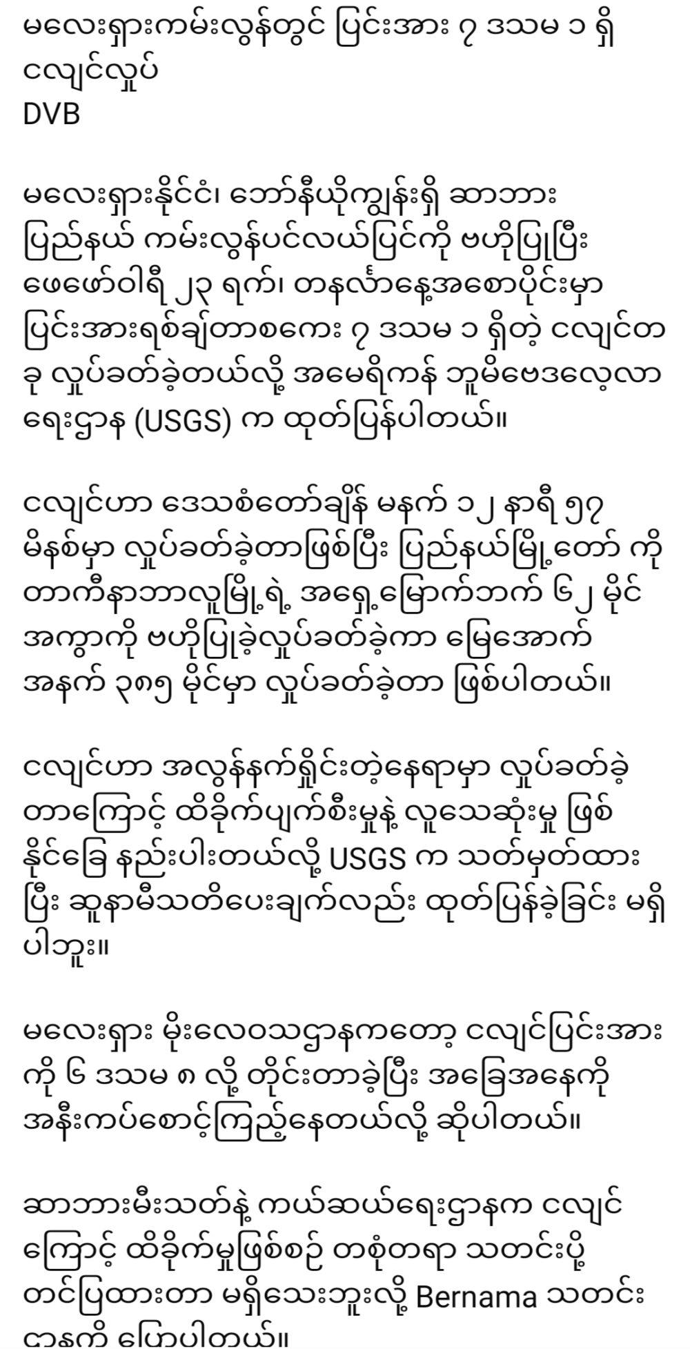 “၇ ဒဿမ ၁ ငလျငိကြီး”