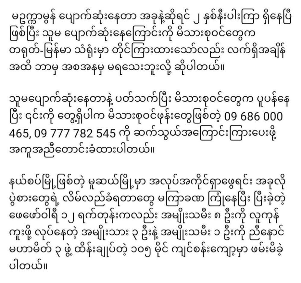 “လူကုန်ကူးခံရပြီး ပျောက်ဆုံးသွားတာတဲ့” February 24, 2026 admin News 0 “လူကုန်ကူးခံရပြီး ပျောက်ဆုံးသွားတာတဲ့”