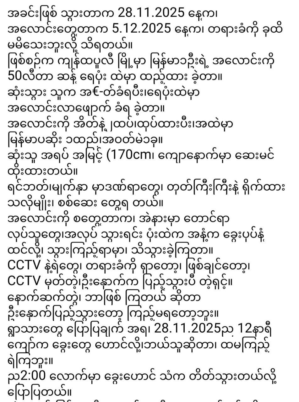 “လူTတ်ပြီး အိတ်နဲ့ထုတ် အမှိုက်ပုံးထဲ ပစ်ခဲ့တဲ့အမှု နောက်ဆက်တွဲတွေ သိရပြီ” March 1, 2026 admin News 0 “လူTတ်ပြီး အိတ်နဲ့ထုတ် အမှိုက်ပုံးထဲ ပစ်ခဲ့တဲ့အမှု နောက်ဆက်တွဲတွေ သိရပြီ”
