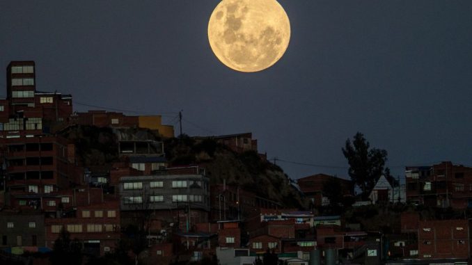 (၂၀၂၆ ခုနှစ် မတ်လ ၂ ရက်နေ့က ဘိုလီးဗီးယားနိုင်ငံ၊ လာပတ်ဇ်မြို့ ကောင်းကင်ယံတွင် “အလုံးစုံလကြတ်ခြင်း” (Total Lunar Eclipse) အခြေအနေမတိုင်မီ မြင်ကွင်များကို တွေ့ရစဉ်။ ဓာတ်ပုံ- EPA)