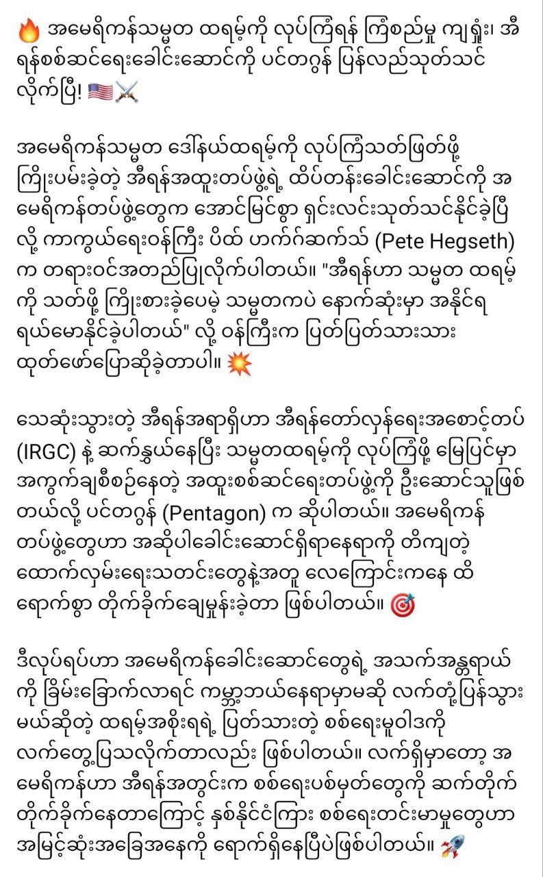 အမေရိကန်စစ်သည်များအတွက် အီရန်ဗိုလ်ချုပ်ကြီး၏ သတိပေးချက် – “ပင်လယ်စာဖြစ်မလား၊ ခေါင်းတလားနဲ့ ပြန်မလား”