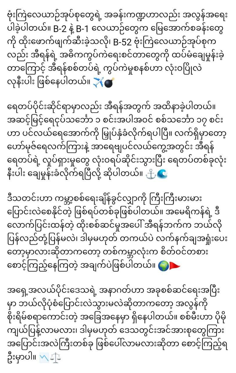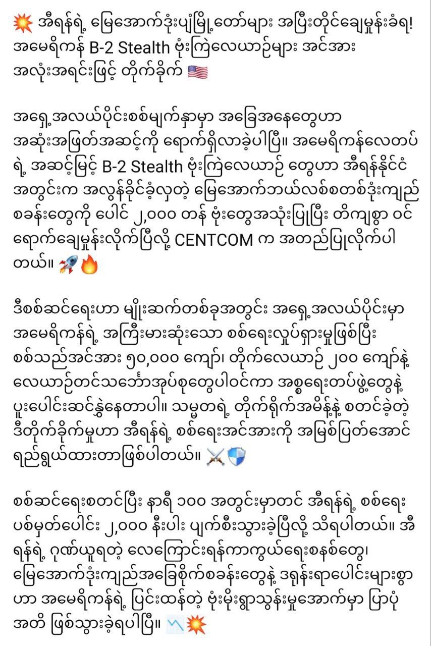“အီရန်ရဲ့ မြေအောက်ဒုံးပျံမြိုတော်ကြီး အပြီးတိုင်ချေမှုန်းခံလိုက်ရပြီ” March 7, 2026 admin News 0 “အီရန်ရဲ့ မြေအောက်ဒုံးပျံမြိုတော်ကြီး အပြီးတိုင်ချေမှုန်းခံလိုက်ရပြီ”