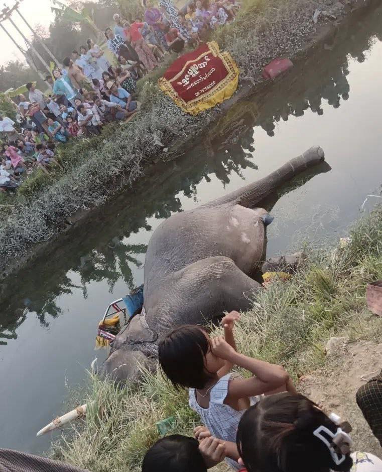 မနေ့က မတ်လ ၁၄ ရက် မနက်ပိုင်းက ကျောက်ဆည်မြို့နယ်၊ လက်ဝဲစုကျေးရွာက အလှူတစ်ခုမှာ အလှူလှည့်နေတဲ့ ဆင်တွေထဲက ရွှေဇဗ္ဇူအောင်ဆင်တော်အဖွဲ့ရဲ့ ဆင်ဟာ ဓာတ်ကြိုးနဲ့ထိမိပြီး ဓာတ်လိုက်ကာ ရေထဲကျပြီး သေဆုံးသွားခဲ့ကြောင်း ဒေသခံများက ပြောပါတယ်။