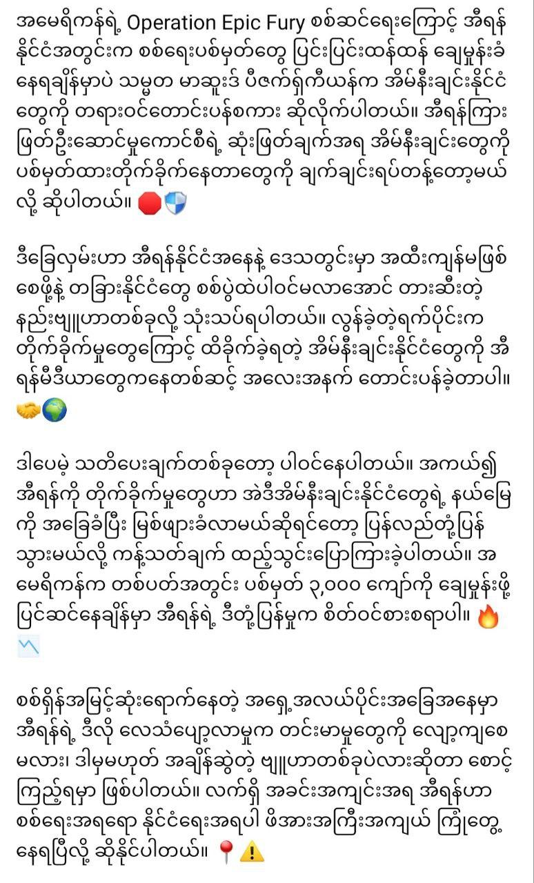“နောက်မလုပ်တော့ပါဘူးတဲ့ အီရန် တောင်းပန်ပြီ” March 17, 2026 admin News 0 “နောက်မလုပ်တော့ပါဘူးတဲ့ အီရန် တောင်းပန်ပြီ”