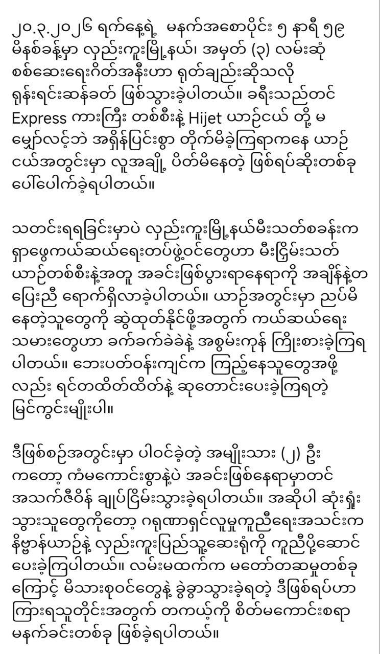“မဟာရန်ကုန်Expressကါးကြီး တိုက်ချက်ကြမ်းပီ Aလောင်းတွေ ခုထိဆွဲထုတ်နေရ” March 20, 2026 admin News 0 “မဟာရန်ကုန်Expressကါးကြီး တိုက်ချက်ကြမ်းပီ Aလောင်းတွေ ခုထိဆွဲထုတ်နေရ”