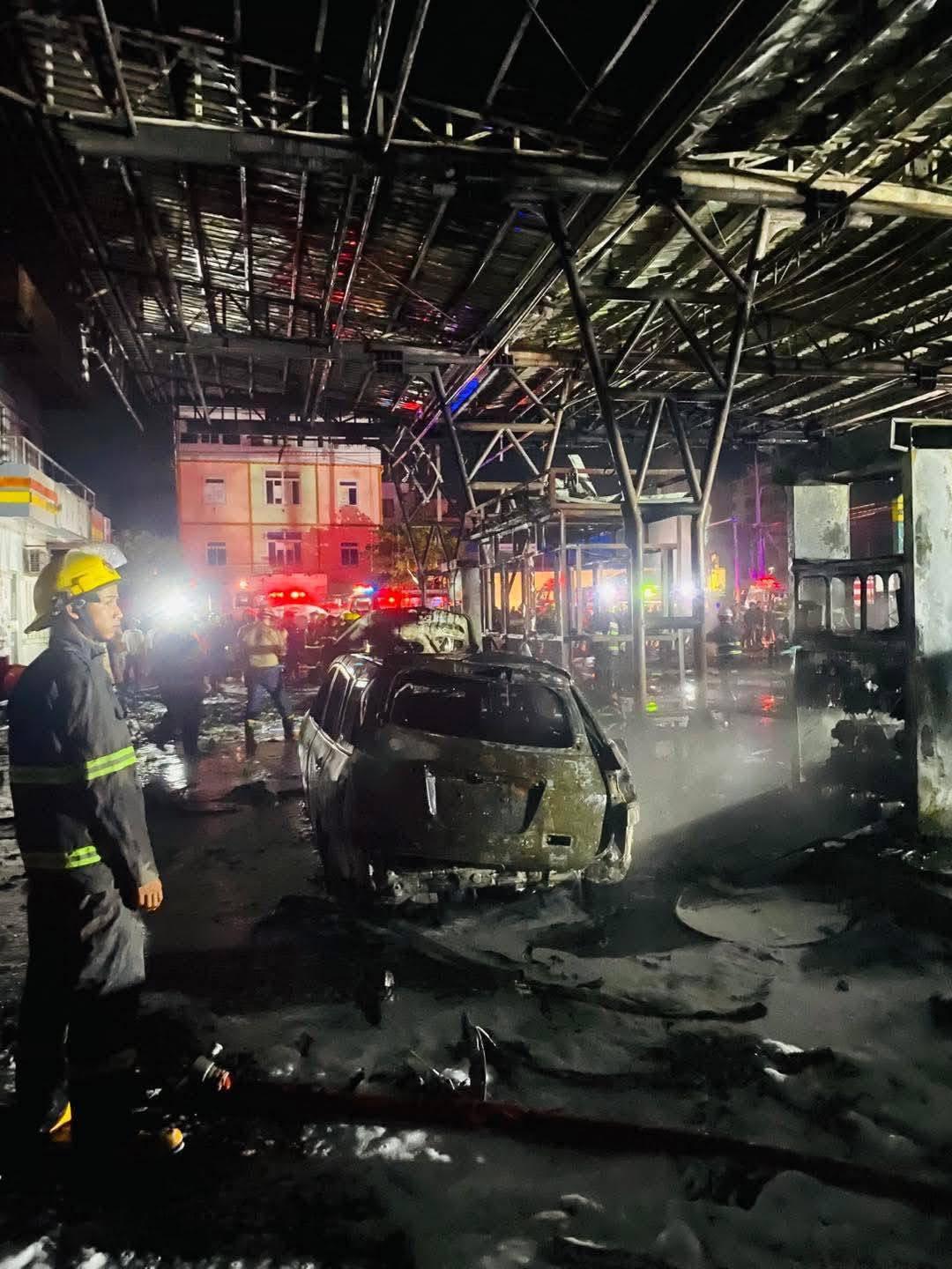 မျက်မြင်တွေ့ရှိသူတစ်ဦးက “၉ နာရီ ၂၉ မိနစ်လောက်မှာ ပထမဆုံး ပေါက်ကွဲသံ အကျယ်ကြီး ကြားရတယ်။ နောက်ထပ် သေးသေးလေးတွေ ဆက်ပေါက်ပြီး မီးက အရမ်းပြင်းသွားတာ။ လမ်းဆုံက မီးပွိုင့်တောင် ပျက်စီးသွားတယ်။ ၁၀ မိနစ်ဆိုတဲ့ အချိန်လေးအတွင်းမှာပဲ ဆီဆိုင်ရော ကားတွေပါ အကုန်ကုန်သွားတာ” ဟု ပြောဆိုသည်။