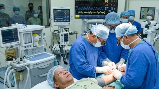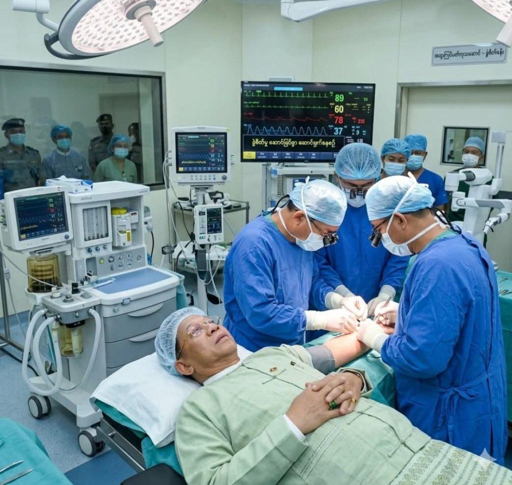 မတ်လ ၂၀ ရက်နေ့ အကြမ်းဖက် မင်းအောင်လှိုင် ခါးရိုးဆစ်ပေါင်းရောဂါကြောင့် အာရုံကြောညှပ်မှု အိန္ဒိယဆရာဝန်များဖြင့် ၂ နာရီကြာ ခွဲစိတ်ခဲ့ပြီး ခွဲစိတ်ကုသမှု အောင်မြင်ကြောင်း စစ်တပ်က ယမန်နေ့ မတ်လ ၂၃ ရက်နေ့တွင်မှ သတင်းထုတ်ပြန်ခဲ့သည်။