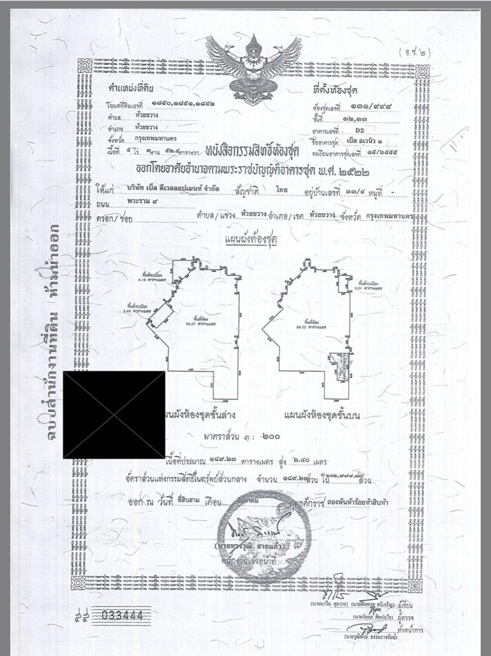 – 131/999 Belle Grand Rama 9 အဆင့်မြင့်ကွန်ဒို တိုက်ခန်း၏ အောင်ပြည့်စုံ အမည်ပေါက်ပိုင်ဆိုင်မှု အထောက်အထား