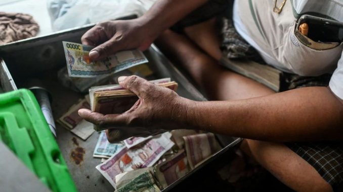 (စစ်တပ်ကငွေလဲနှုန်းကို ဖိအားပေးတင်းကြပ်ထားပေမယ့် ကျပ်ငွေတန်ဖိုးက သိသိသာသာကျဆင်းနေပါတယ်။ ဓာတ်ပုံ -Bloomberg)