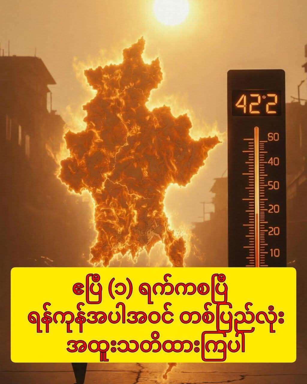 ဒီသတင်းစကားကို မိမိတို့ရဲ့ မိသားစုနဲ့ သူငယ်ချင်းတွေ သိရှိပြီး ကြိုတင်ပြင်ဆင်နိုင်အောင် ဝိုင်းဝန်း Share ပေးခြင်းဖြင့် ကူညီပေးကြပါဦးရှင်။ အားလုံးပဲ အပူဒဏ်ကနေ ဘေးကင်းကြပါစေ။ 🙏✨