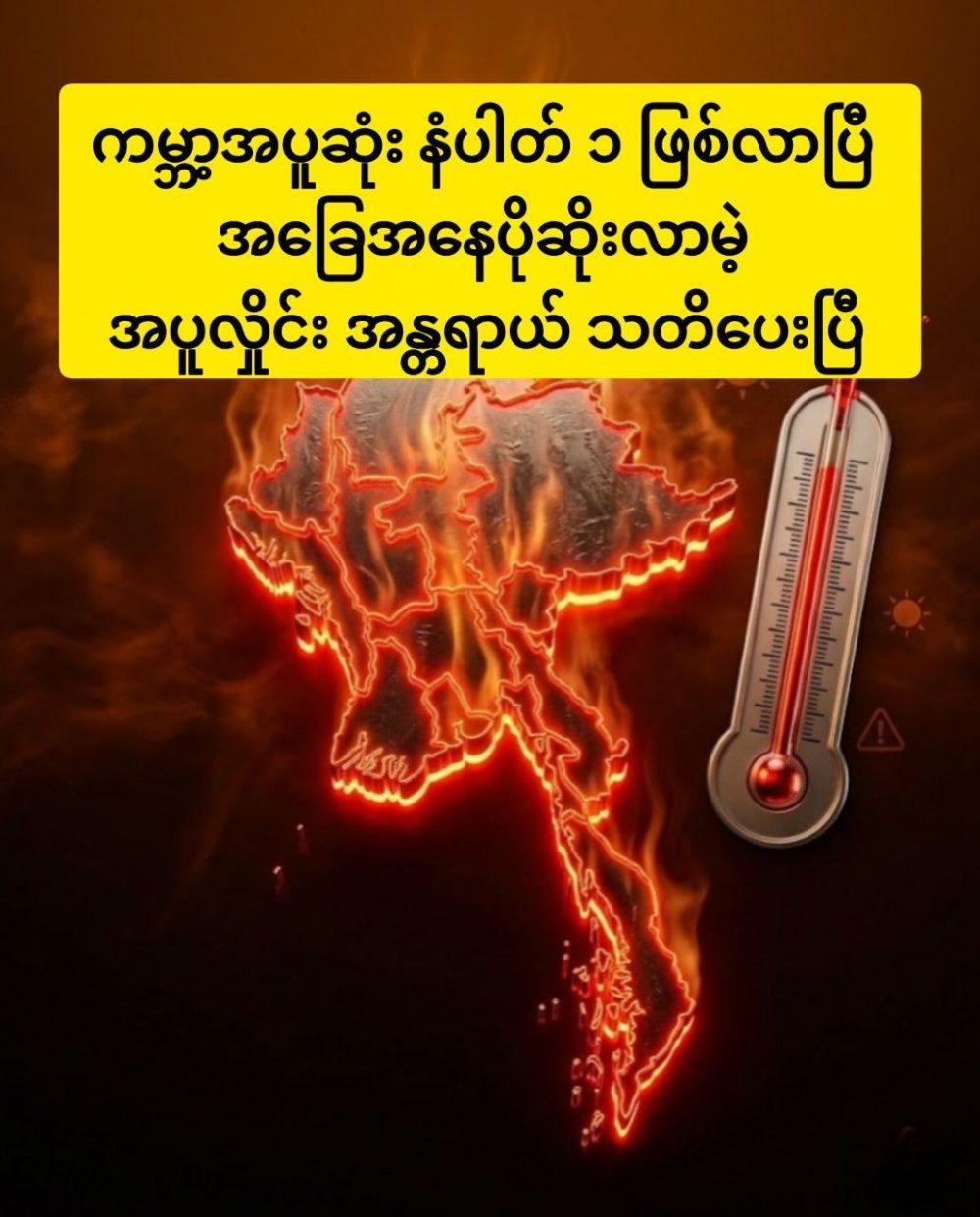 မိမိတို့ဒေသက အပူချိန်အခြေအနေကို အချင်းချင်းသတိပေးနိုင်ဖို့ ဒီသတင်းကို အခုပဲ Share လုပ်လိုက်ကြပါဦးဗျာ။