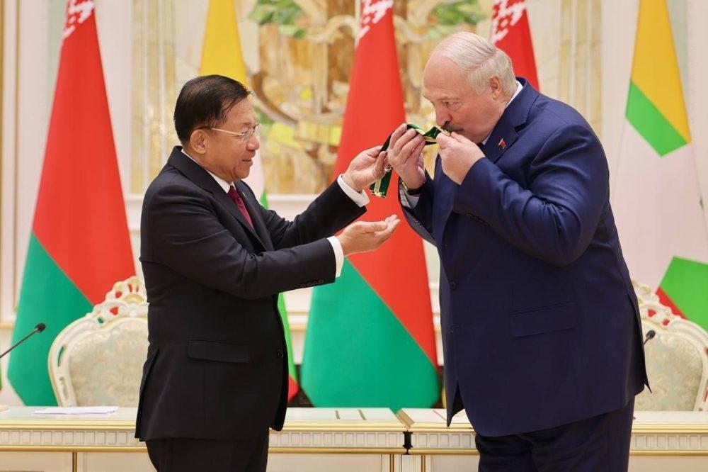 NLDပါတီက ၂၀၂၀ ရွေးကောက်ပွဲတွင် မဲမသမာမှုလုပ်၍ အာဏာထိန်းရပါသည်ဆိုသော အကြမ်းဖက် မင်းအောင်လှိုင်မှာ စစ်တပ်က ဦးစီးလုပ်ဆောင်ခဲ့သော ရွေးကောက်ပွဲအတုနှင့် လွှတ်တော်အတုက တင်မြှောက်သော အကြမ်းဖက် သမ္မတ ဖြစ်လာသည်။