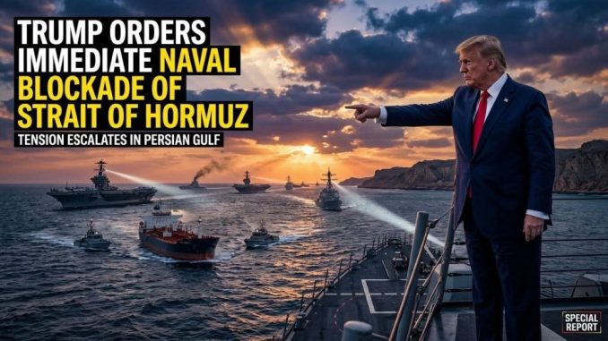 အမေရိကန်သမ္မတ ဒေါ်နယ်ထရမ့်က ဟော်မုဇ်ရေလက်ကြား (Strait of Hormuz) သို့ ဝင်ထွက်သွားလာမည့် သင်္ဘောများအားလုံးကို “ယခုချက်ချင်းစတင်၍ (effective immediately)” ပိတ်ဆို့တားဆီးရန် အမေရိကန်ရေတပ်ကို ယနေ့ (ဧပြီ ၁၂၊ ၂၀၂၆) နံနက်ပိုင်းတွင် အရေးပေါ် အမိန့်ပေးလိုက်ပြီဖြစ်ကြောင်း ကြေညာလိုက်သည်။
