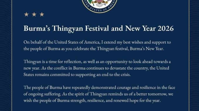 The people of Burma have repeatedly demonstrated courage and resilience in the face of ongoing suffering. As the spirit of Thingyan reminds us of a better tomorrow, we wish the people of Burma strength, resilience, and renewed hope for the year.